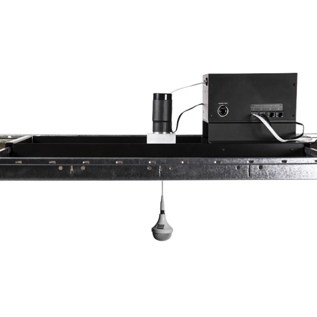 ميكروفون سقفي آلي ثلاثي العناصر مزود بثلاثة أنماط التقاط قلبيّة تغطي زاوية 360 درجة، مخصص لغرف الاجتماعات والمؤتمرات وقاعات المحاكم وغيرها من الأماكن.