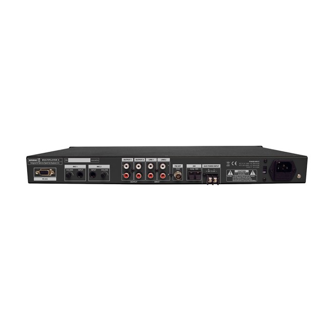 يدمج MULTIPLAYER 5 في وحدة رف واحدة بارتفاع 1U مقاس 19 بوصة، مشغل أقراص مدمجة متعدد الصيغ، ومستقبل AM/FM، ومزج صوتي MIC/LINE. تمنح هذه المرونة الكبيرة جهازًا مناسبًا للتركيبات الثابتة أو المتنقلة عندما لا تكون هناك حاجة إلى جميع العناصر بشكل منفصل للحصول على النتيجة المطلوبة. كما يحتوي على منفذ RS232 مدمج لاستقبال أوامر التحكم.