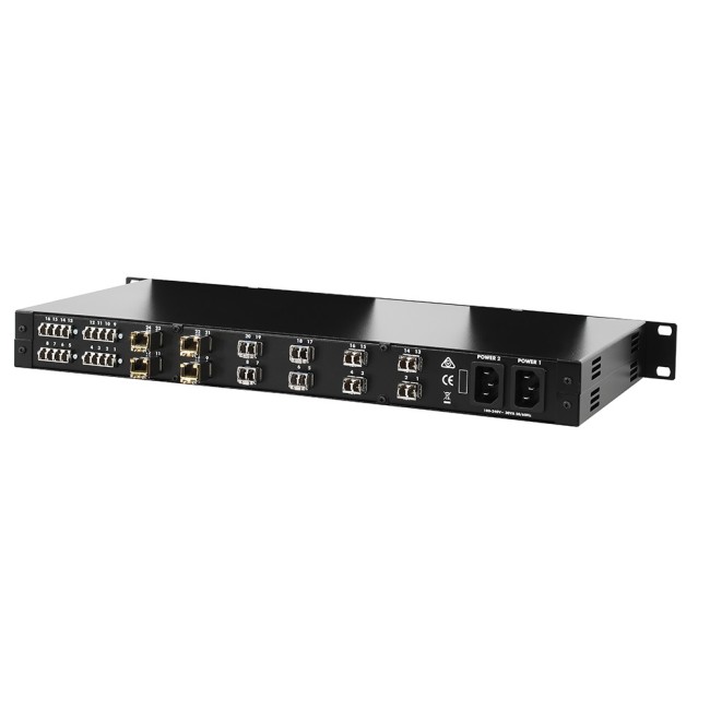 جهاز FESTIVAL BOX - Grand هو محول أنظمة من نقطة إلى نقطة، يمكن استخدامه مع أي تنسيق متاح في السوق يمكن توصيله عبر وحدات SFP. توفر الوحدة اثنتي عشرة وحدة إدخال/إخراج SFP، ويمكن تجهيز كل منفذ SFP بأي واجهة مثل الألياف متعددة النمط أو أحادية النمط أو MADI أو Ethernet RJ45، بما يتوافق مع معيار MSA، حيث يقوم جهاز Festival Box بنقلها بطريقة شفافة.