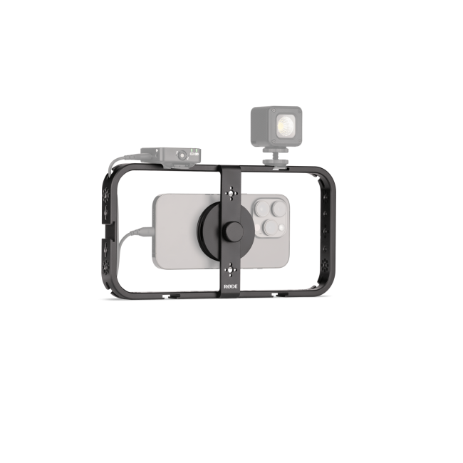 حوّل هاتفك الذكي إلى جهاز تصوير احترافي مع Phone Cage. يتميز بنظام تثبيت آمن للغاية لتركيب iPhone® مزود بتقنية MagSafe® أو أي هاتف ذكي آخر مزود بغطاء أو ملحق متوافق مع MagSafe، بالإضافة إلى فتحات لإدارة الكابلات، وخمسة منافذ cold shoe لتوصيل الميكروفونات والأضواء، ومجموعة واسعة من فتحات اللولب مقاس 1/4 بوصة و3/8 بوصة لاستخدامها مع الحوامل الثلاثية والمقابض والملحقات الأخرى. إنه الحل المثالي لتحسين جودة محتوى هاتفك الذكي.