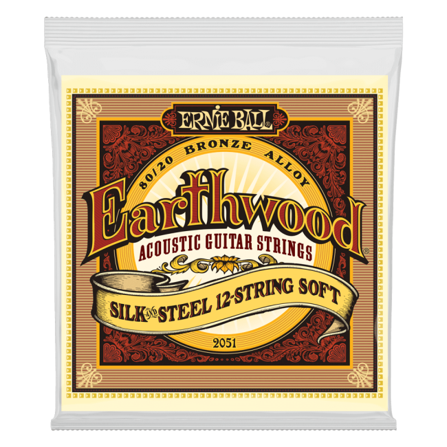 Ernie Ball Earthwood Silk & Steel Soft 80/20 Bronze acoustic guitar strings are made with an 80/20 bronze alloy wrap, along with a layer of silk between the wrap and steel core. The silk produces a more mellow sound and makes the string feel more comfortable while reducing finger noise. Gauges .009 .009, .012 .012, .020w .009, .026 .012, .036 .020p, .046 .026.