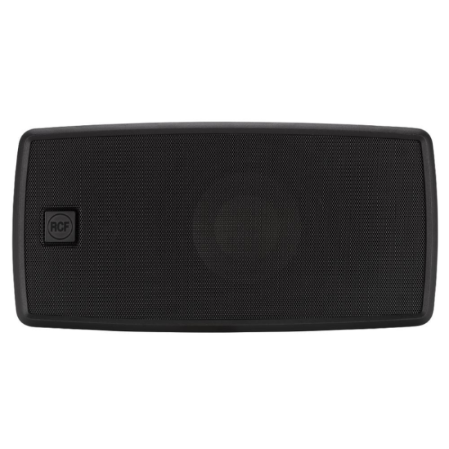 The RCF WMR 50T is a compact black two-way wall-mount monitor speaker delivering 40 W RMS power, up to 110 dB SPL, and wide 140° × 100° coverage. With selectable 70/100 V transformer taps, IP55 weather protection, and a sturdy wall bracket included, it’s